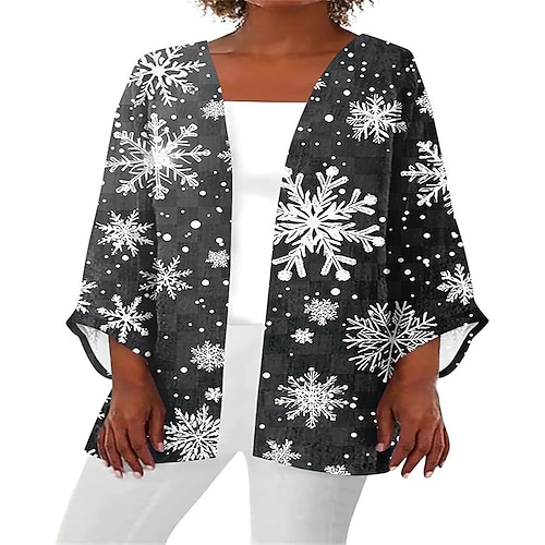 Natale Per donna Camicia Blusa Top Eleganti Grafico Babbo Natale Albero di Natale Elegante Vintage Carino Manica Lunga Asimmetrico Top Regolari Quotidiano Lavoro Ferie Arricciato Stampato Drappeggiato