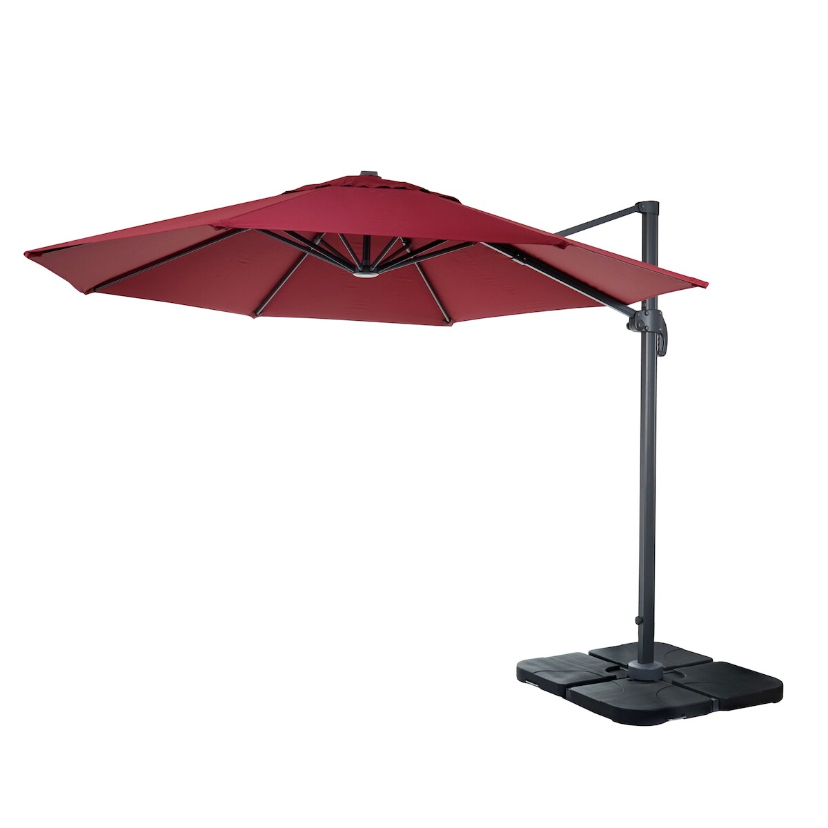 Mendler Gastronomie-Ampelschirm HWC-A96, Sonnenschirm, rund Ø 3m Polyester Alu/Stahl 23kg ~ bordeaux mit Ständer