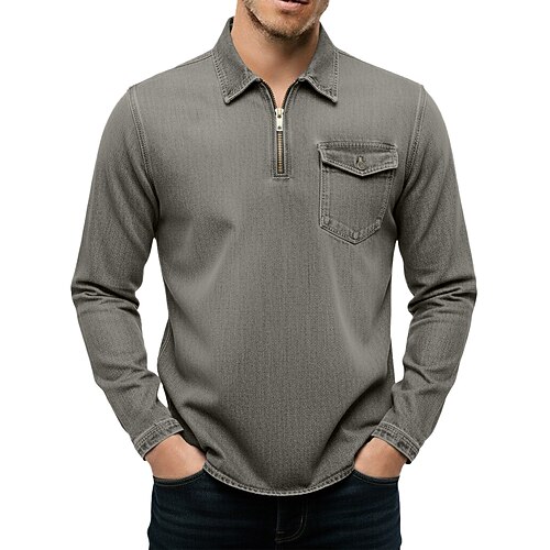 Per uomo Polo con zip Polo da Golf Vacanza Streetwear Con cerniera Manica Lunga Moda Essenziale Semplice Tasca Jeans Primavera Autunno Primavera Autunno Vestibilità regolare Nero Rosa Blu marino