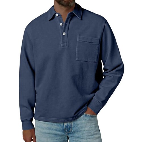 Per uomo Maglia da golf Polo da Golf Casuale Lavoro Bavero Manica Lunga Essenziale Moderno Semplice Bottoni Tasca Frontale Primavera Autunno Vestibilità regolare Blu Nero Blu marino Viola Marrone
