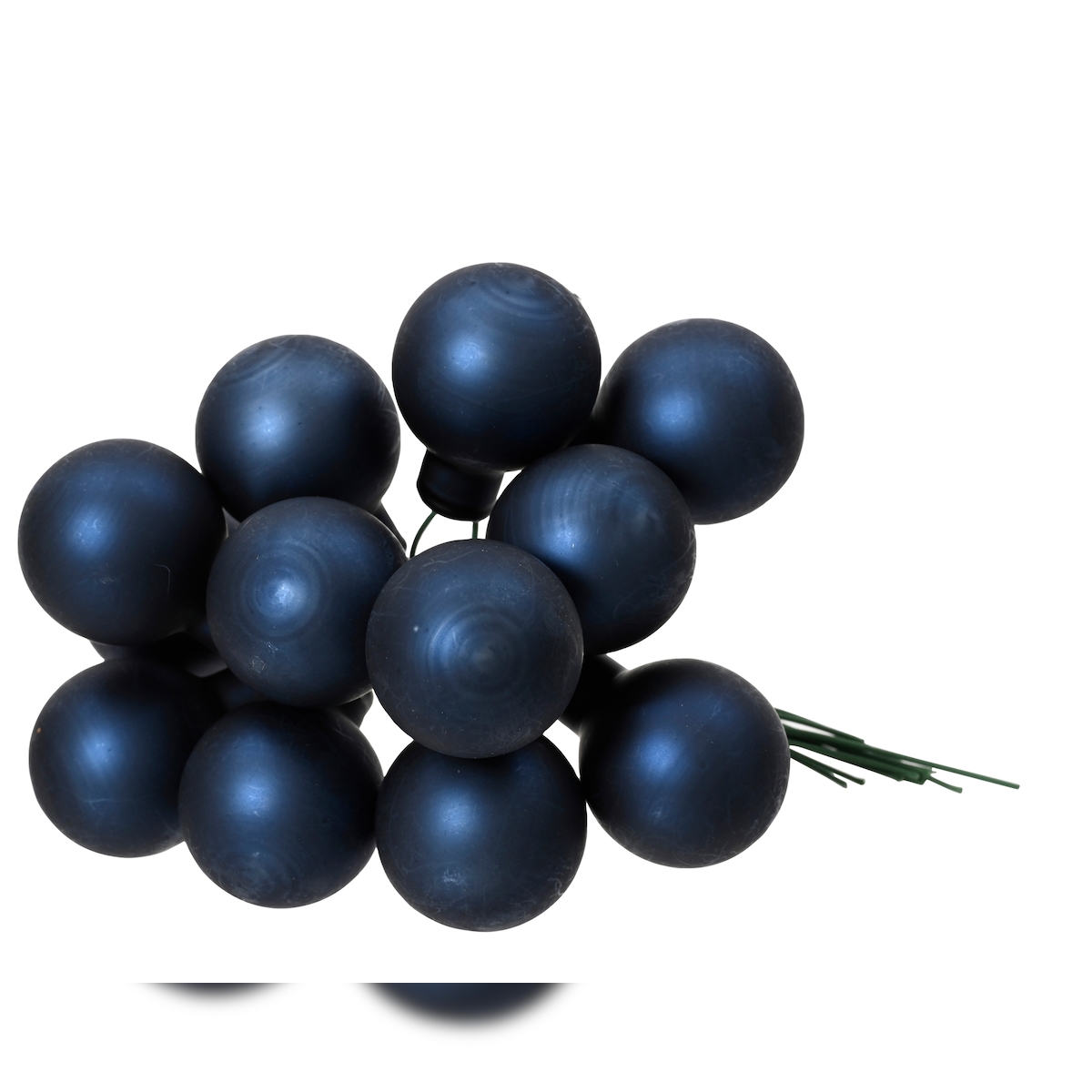 12 Weihnachtskugeln am Draht Glas 2cm mini Spiegelbeeren zum Basteln dunkelblau