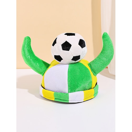 Cappello da soccer vichingo in poliestere per uomini del Mardi Gras – design divertente verde e giallo con motivo calcistico – perfetto per feste di carnevale e costume in maschera