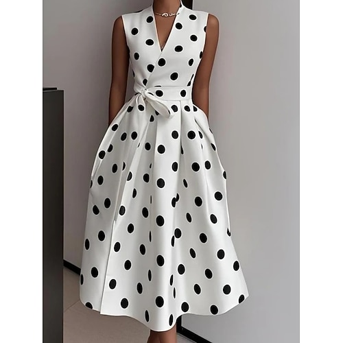 Per donna Abito Midi Vestito Casual Abito da lavoro Abito a pois Elegante Moda Moderno All'aperto Vacanza Uscire Vestibilità regolare Puois Senza Maniche Scollo a V Nero Bianco Estate Primavera