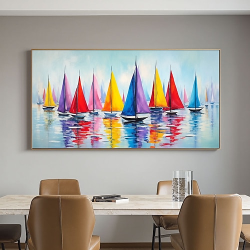 tela colorata con barche a vela, pittura murale, club velico, decorazione murale, poster di barche a vela, pittura a vela, barca a vela, arte nautica, pittura di barche, paesaggio marino, decorazione