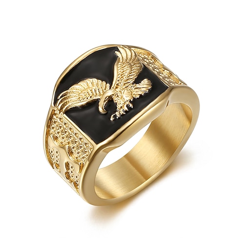 anello da uomo in acciaio inossidabile con aquila, design in smalto nero con finitura oro e argento, anello alla moda, perfetto per occasioni informali o formali