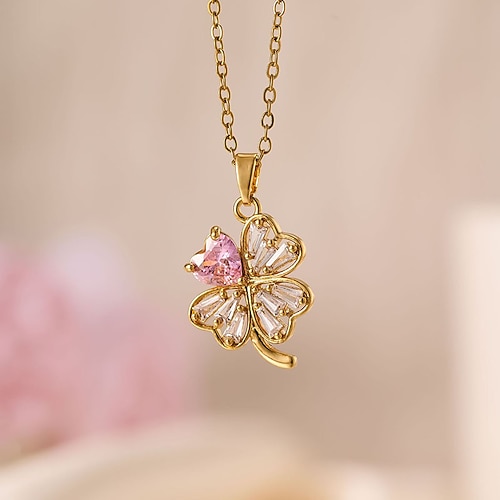 1 pezzo Collana con pendente Collana For Per donna Zircone cubico Quotidiano Streetwear Regalo Acciaio al titanio Patchwork Floreale Giorno di San Patrizio