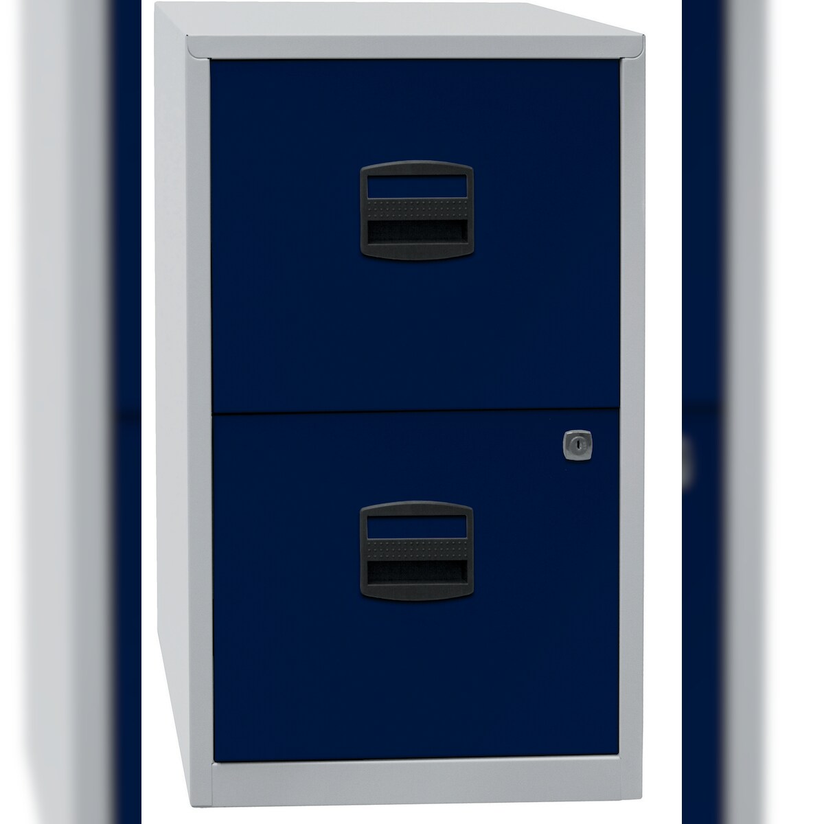 Bisley Home Hängeregistraturschrank mit Schloss aus Stahlblech, 2 Schubladen, einbahnig - Hängeregisterschrank abschließbar, Hängeregistratur für