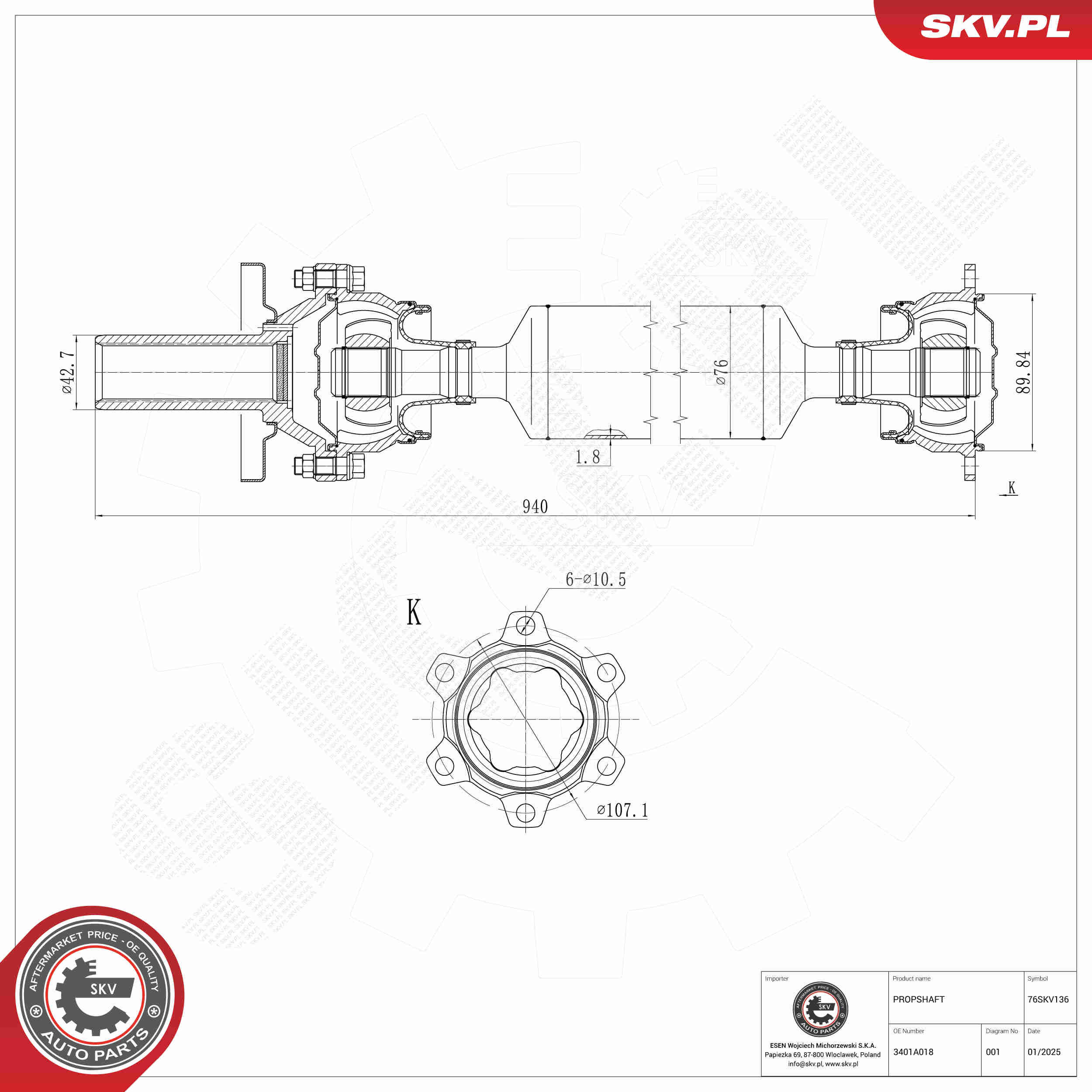 ESEN SKV Antriebswelle 76SKV136 hinten rechts links 76mm für MITSUBISHI 3401A018