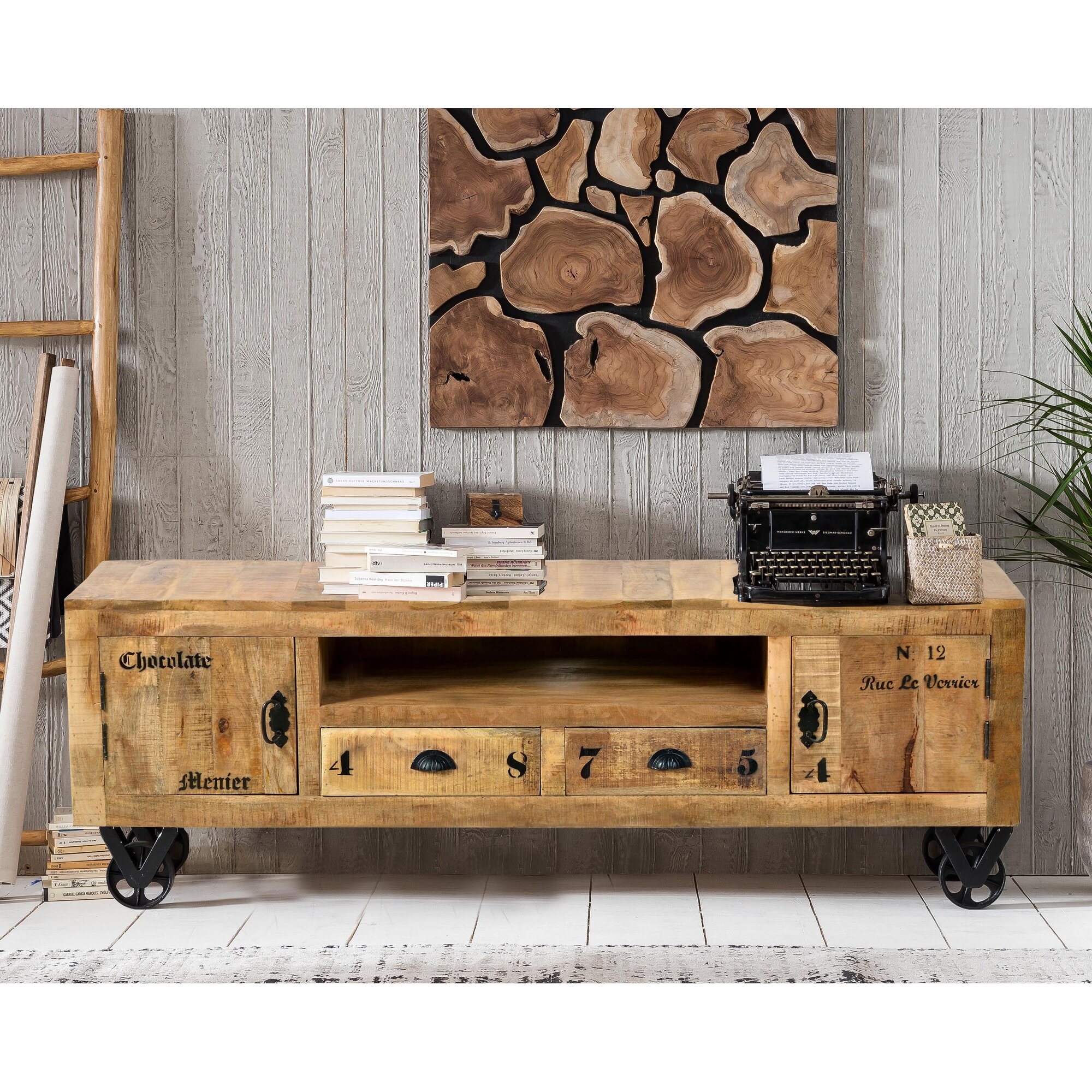 SIT »Rustic« Massivholz Mango Lowboard - 2 Türen, 2 Schubfächer 1921-04 / B 200 x H 55 x T 40 cm