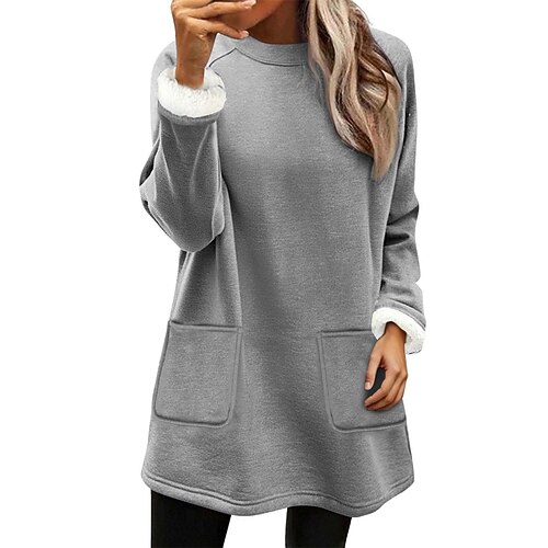 Per donna Felpa Pullover Tasca Semplice Casual Manica Lunga Girocollo Top lunghi Streetwear Abbigliamento Quotidiano Nero Rosa Arancione Blu scuro Beige Autunno Inverno