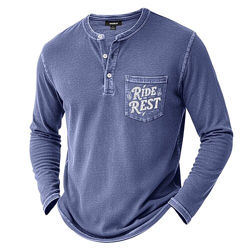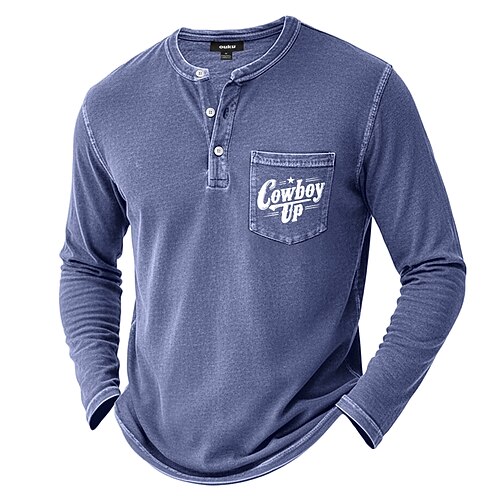 Per uomo Maglia Henley Maglietta Manica Lunga Vintage Stampa lettera Retrò Vintage Casual Con stampe Tasca Grafico Henley Casuale Primavera Autunno Tutte le stagioni Blu Viola Marrone Maglietta Henley