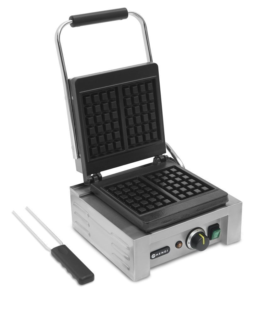 HENDI Doppel-Waffeleisen 'Liège', Edelstahl / emailliertes Gusseisen, 43.7 x 32 x 25.1 cm, isolierter Griff, inklusive Waffelgabel, silber