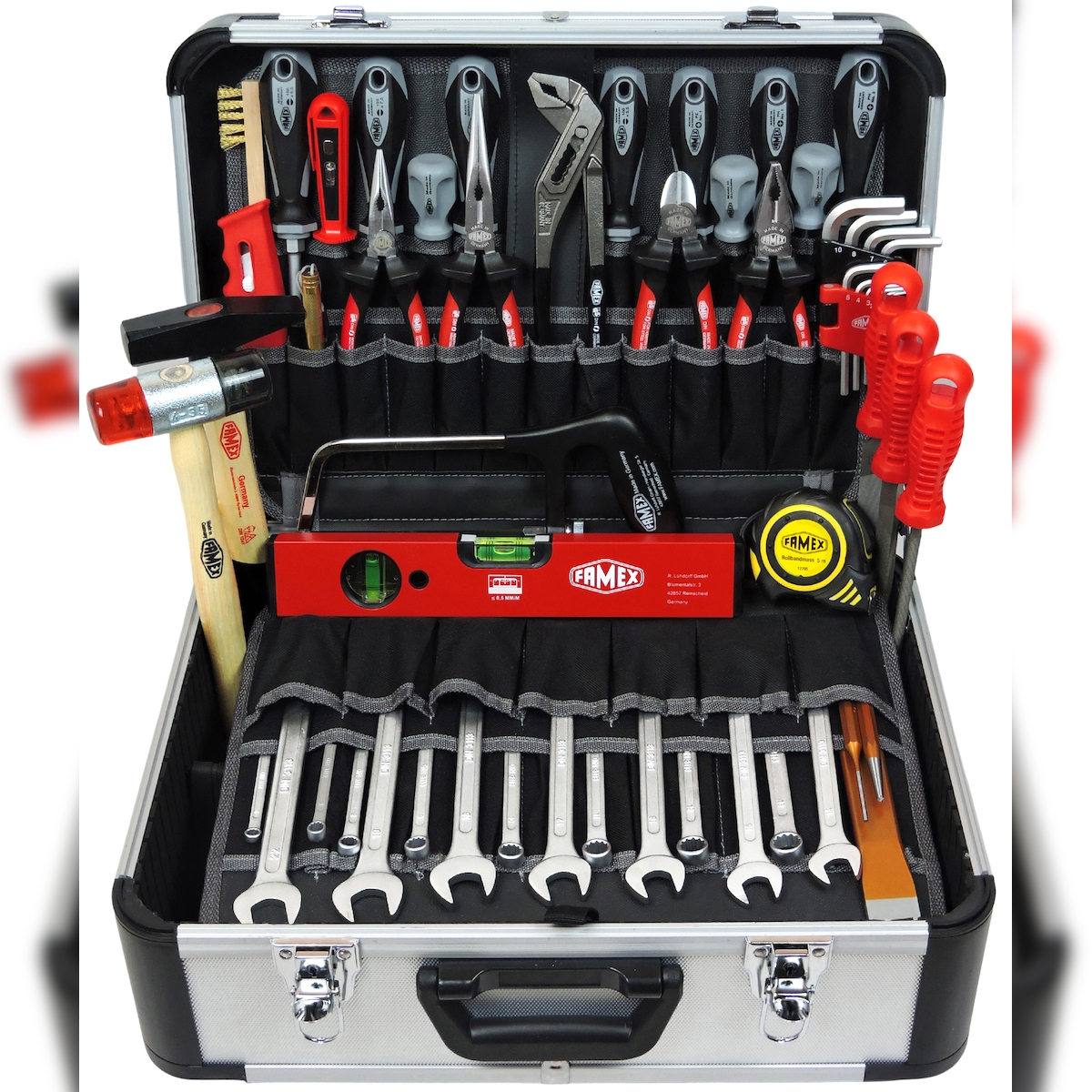 FAMEX 420-88 Profi Alu Werkzeugkoffer bestückt mit Werkzeug Set - Werkzeugkiste gefüllt - TOP Qualität