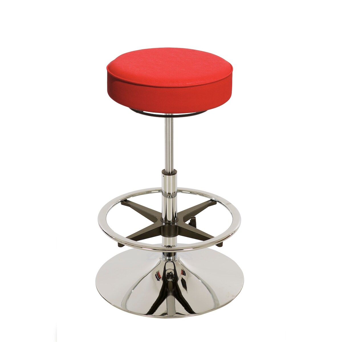 PROREGAL Drehhocker Indianapolis High | Sitzhöhe 58-83cm | Ø 50cm | Tragfähigkeit 110kg | Kunstleder-Sitz | Stahltellerfuß & Fußring | Feuerrot