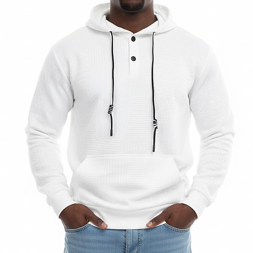Per uomo Jacquard Felpa con cappuccio Maglione Felpa con cappuccio abbottonata Bianco Giallo Marrone Grigio chiaro Con Cappuccio Semplice Patchwork Blocco di colore Testurizzato Casuale Quotidiano