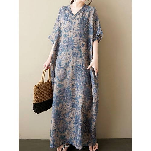 Per donna Abito maxi Abito a trapezio Casual Quotidiano Vestibilità comoda Floreale Manica Corta Scollo a V Blu Giallo Rosa Verde Primavera