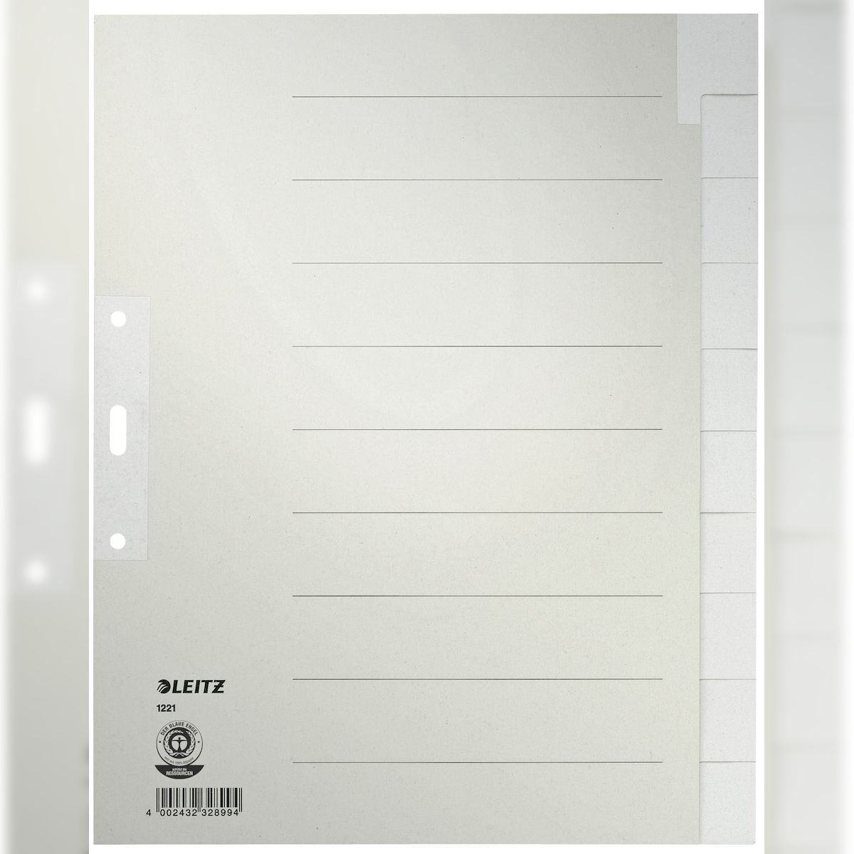 Leitz 1221-00-85 1221 Register - Tauenpapier, blanko, A4 Überbreite, 10 Blatt, grau