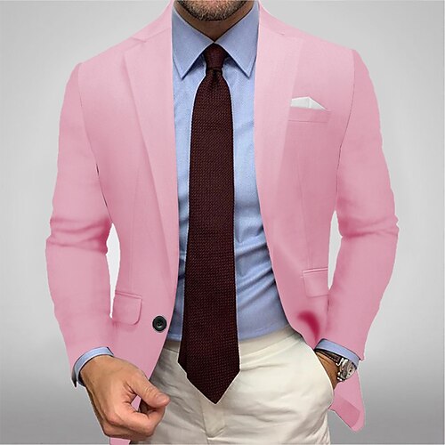 Per uomo Blazer Completi Affari Cocktail party Ricevimento di matrimonio 2 pezzi Moda Casual Primavera Autunno Poliestere Semplice Tasca Bottoni Confortevole Monopetto Giacca Nero Bianco Giallo Rosa