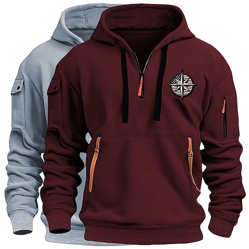 Per uomo Felpa con cappuccio Felpa con cappuccio e zip corta Felpa con cappuccio in pile Felpa con cappuccio tattica Bianco kaki Blu navy bianco Grigio scuro grigio chiaro Blu navy grigio