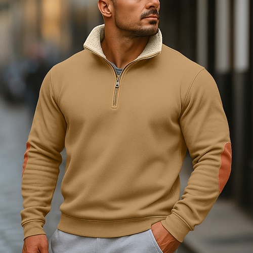 Per uomo Felpa con cappuccio Felpa con cappuccio e zip corta Felpa con cappuccio in pile Felpa con cappuccio foderata in pile Nero Blu marino Cachi Grigio chiaro Grigio scuro Con Cappuccio Semplice