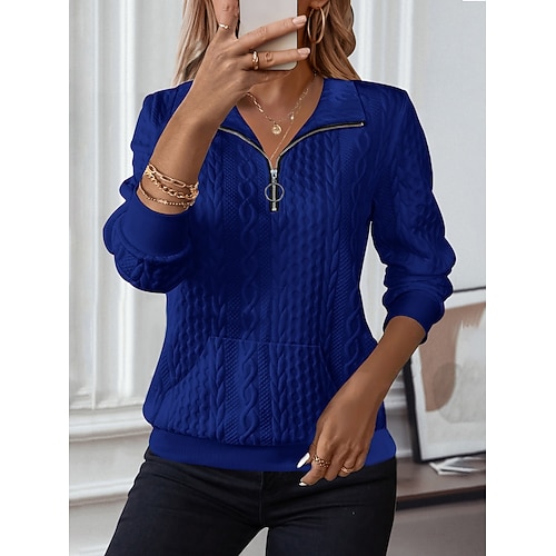 Per donna Blusa Tinta unica Elegante Casual Manica Lunga Colletto a Camicia Top Regolari Quotidiano Cerniera Rosa Blu Viola Albicocca Grigio Primavera Autunno Inverno