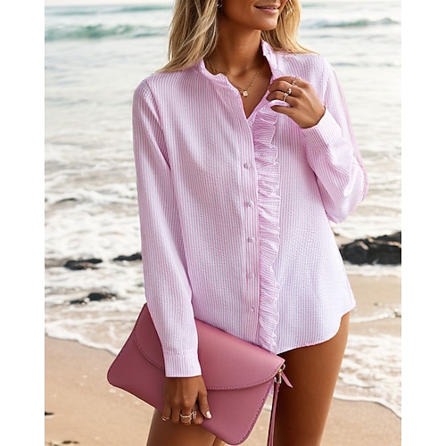 Per donna Blusa Tinta unica Elegante Essenziale Casual Manica Lunga Colletto a Camicia Top Regolari Quotidiano Volant Nero Bianco Rosa Rosso Albicocca Primavera Autunno