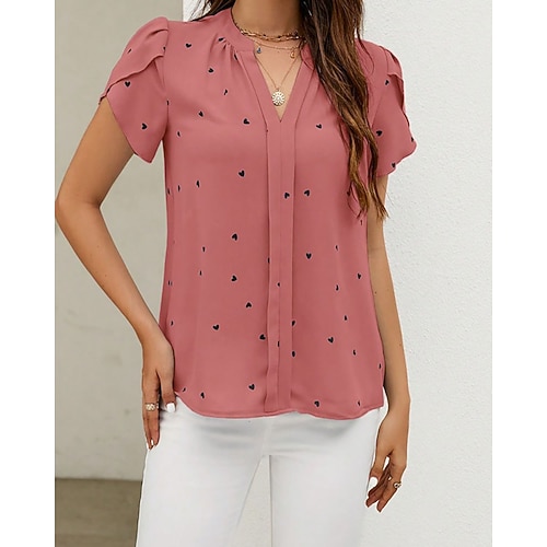 Per donna Camicia Blusa Cuore Vintage Elegante Manica Corta Scollo a V Top Regolari Quotidiano Ferie Uscire Patchwork Stampato Corallo Rosso Nero Verde chiaro Rosa Albicocca Estate Primavera