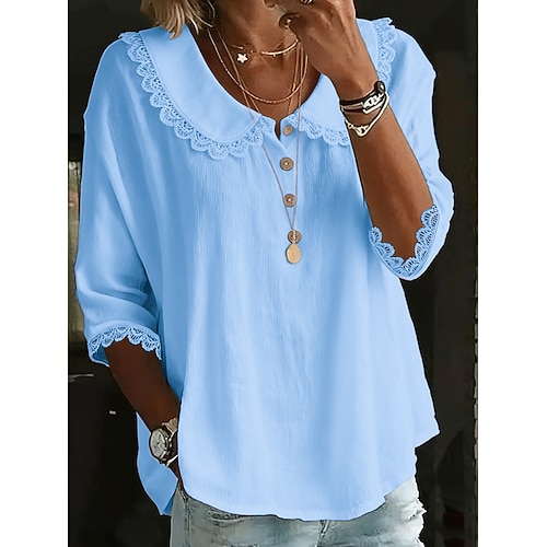 Per donna Blusa Tinta unica Elegante Casual Manica 3/4 Colletto a Camicia Top Regolari Quotidiano Bordo in pizzo Blu Bianco Giallo Rosa Estate Primavera Autunno