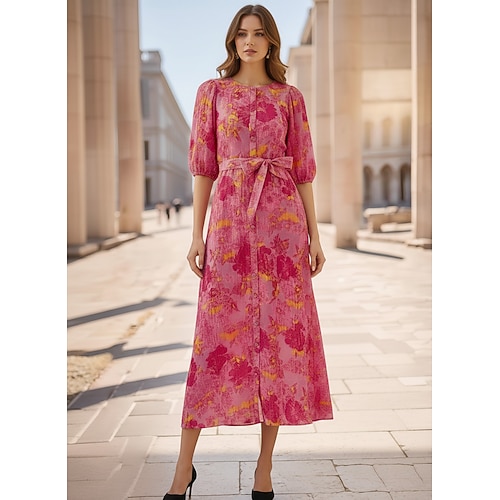 Linea ad A Abito Lunghezza al pavimento Abito da Cocktail Abito da invitata a nozze Abito da cerimonia per signora Mezza Manica Scollo a Barca Elegante Vintage Formale Chiffon Scialli con Fiori 3D