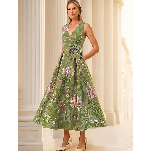 Linea ad A Lunghezza alla caviglia Abiti da Cocktail Elegante Floreale Senza Maniche Monospalla Festa in giardino Matrimonio Jacquard con Pieghe