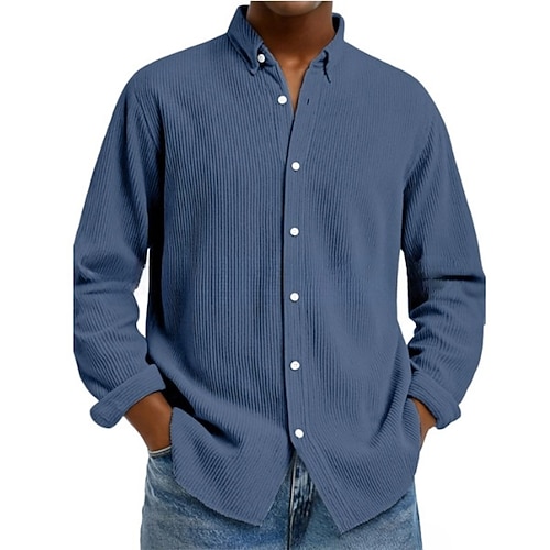 Per uomo Camicia Camicia casual Camicia di Velluto a Coste Camicia con Bottoni Blu Nero Bianco Rosso Blu marino Manica Lunga Semplice Collo ripiegato Casuale All'aperto Tasca Abbigliamento Moda Casual