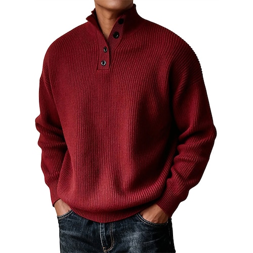 Per uomo Felpa Maglione a maglia Maglione lavorato a maglia A Coste Maglia Top Regolari Bottoni Lavorato a maglia Semplice Collo alla coreana Moda Streetwear Casuale Abbigliamento quotidiano