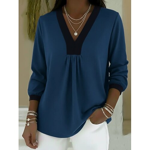 Per donna Blusa Top Eleganti Tinta unica Semplice Elegante Vintage Signore Manica Lunga Scollo a V Top Regolari Lavoro Quotidiano Ferie Arricciato Patchwork Drappeggiato Blu Nero Bianco Albicocca