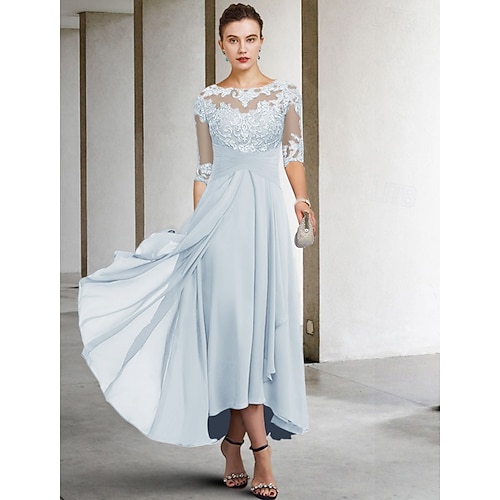 Linea ad A Asimmetrico Lunghezza alla caviglia Vestito da Festa Abito da Cocktail Abito da invitata a nozze Abito da cerimonia per signora Mezza Manica Scollo a V Elegante Taglie Forti Alto Basso
