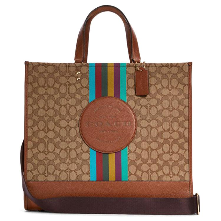 Coach Dempsey 40 Monogram Business Casual Color Block Jacquard Leather Tote Bag Shopping Commuter Crossbody Handbag Large Women tote C5793-IMT1O
