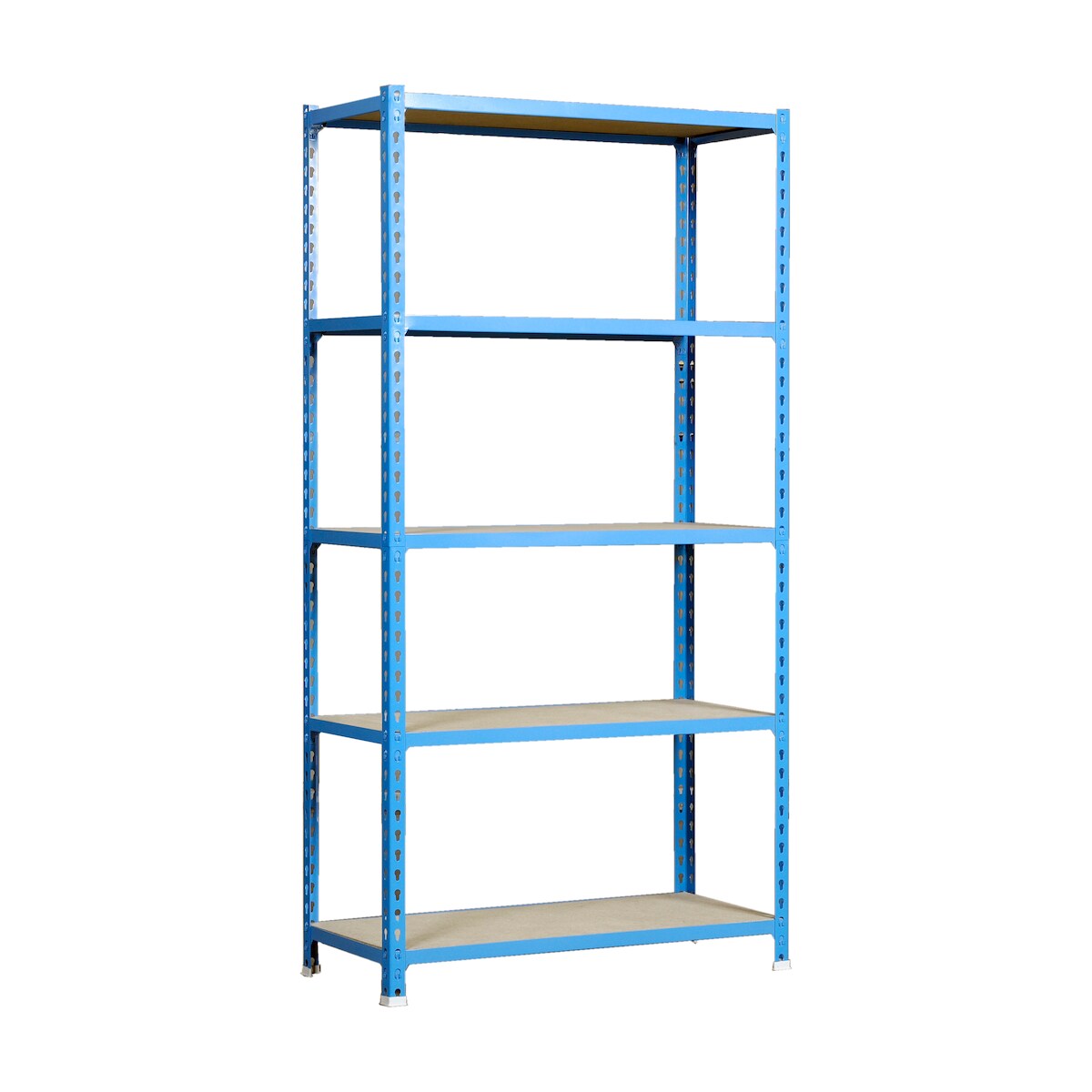 SimonRack Maderclick schraubenloses Metallregal 5 Böden. Farbe BLAU/HOLZ 2000x1200x500 mm