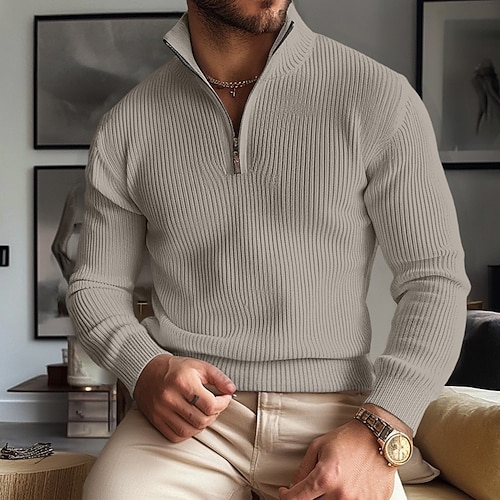 Per uomo Felpa Maglione con zip Maglioni con zip a un quarto A coste Grosso Maglia Classico Mezza Zip Tinta unica Colletto alla coreana Elegante Vintage Formale Interni Abbigliamento Rimborsate