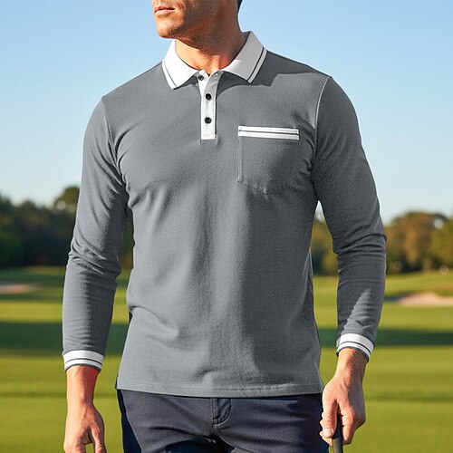 Per uomo Camicia da golf Golf Polo da golf Ufficio Informale Bavero Manica lunga Essenziale Moderno Tinta unica Bottoni Tasche Primavera Autunno Standard Rosa chiaro Nero Bianco Rosa Blu marino