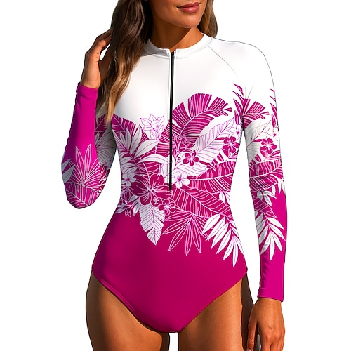 Per donna Costume da Bagno Rash Guard Floreale Protezione Solare UV UPF50 Asciugatura Rapida Spandex Manica Lunga Costume da Bagno costume da bagno Cerniera Frontale Surf Spiaggia Sport Acquatici