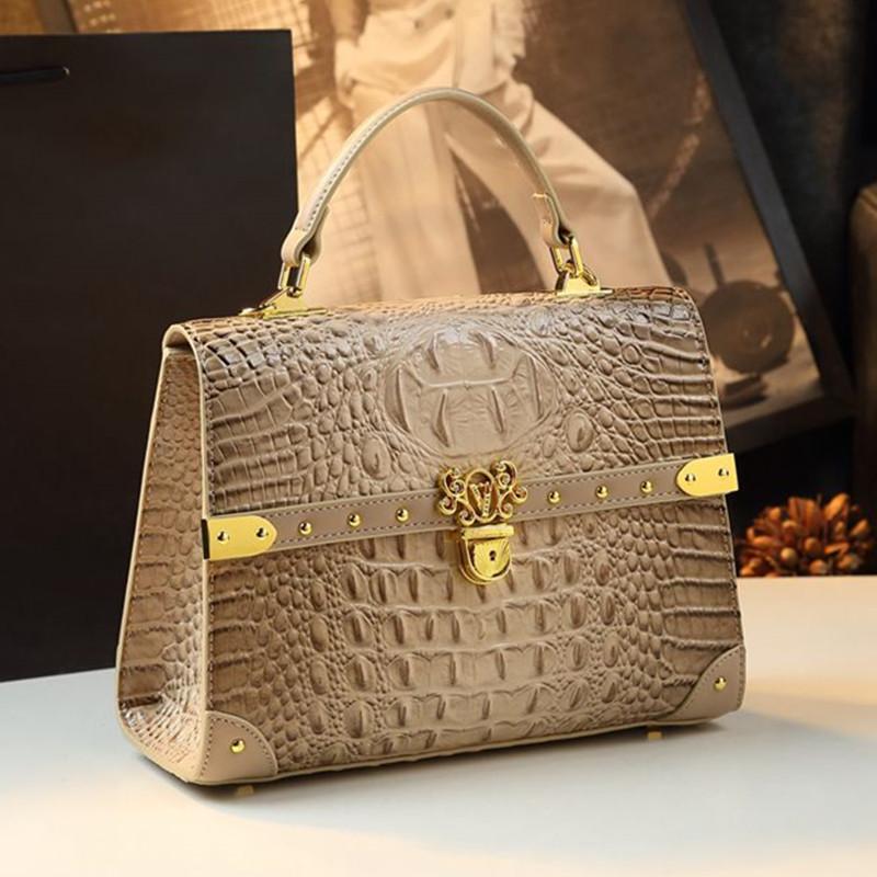 Damesmode Tas van Echt Leer Dames Tas 2024 Nieuw Handtas met Krokodillenprint Mode Alle Crossbody Schoudertassen bruin