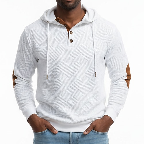 Per uomo Jacquard Felpa con cappuccio Maglione Felpa con cappuccio abbottonata Bianco Marrone Cachi Grigio chiaro Con Cappuccio Semplice Patchwork Blocco di colore Testurizzato Casuale Quotidiano