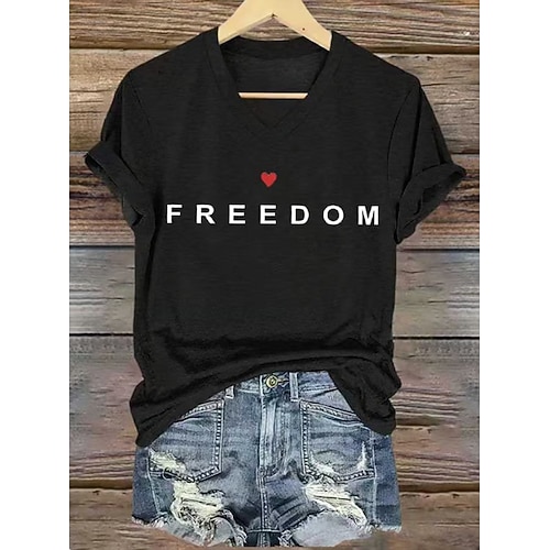 Giorno dell'Indipendenza Americana Per donna Maglietta Grafico Lettera Bandiera Americana Vintage Elegante Classico Manica Corta Girocollo Scollo a V Top Regolari Quotidiano Weekend Stampato Blu Nero