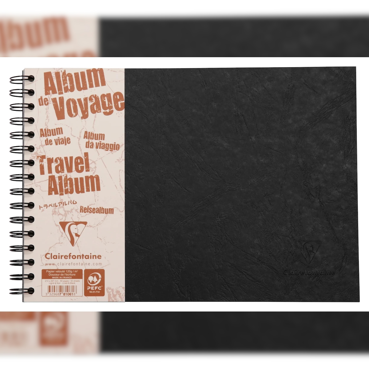 Clairefontaine 5x Reisealbum Age Bag A4 quer liniert und blanko 40 Blatt - Schwarz 781061C