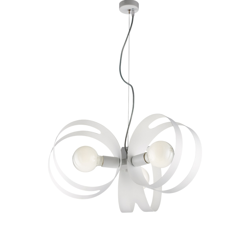 BeLight Peter - Pendelleuchte aus weiß lackiertem Eisen mit lasergeschnittenen Bändern und verstellbarem Stahlkabel 3 Lichter 130 - Ø48 - BL306-3-BCO