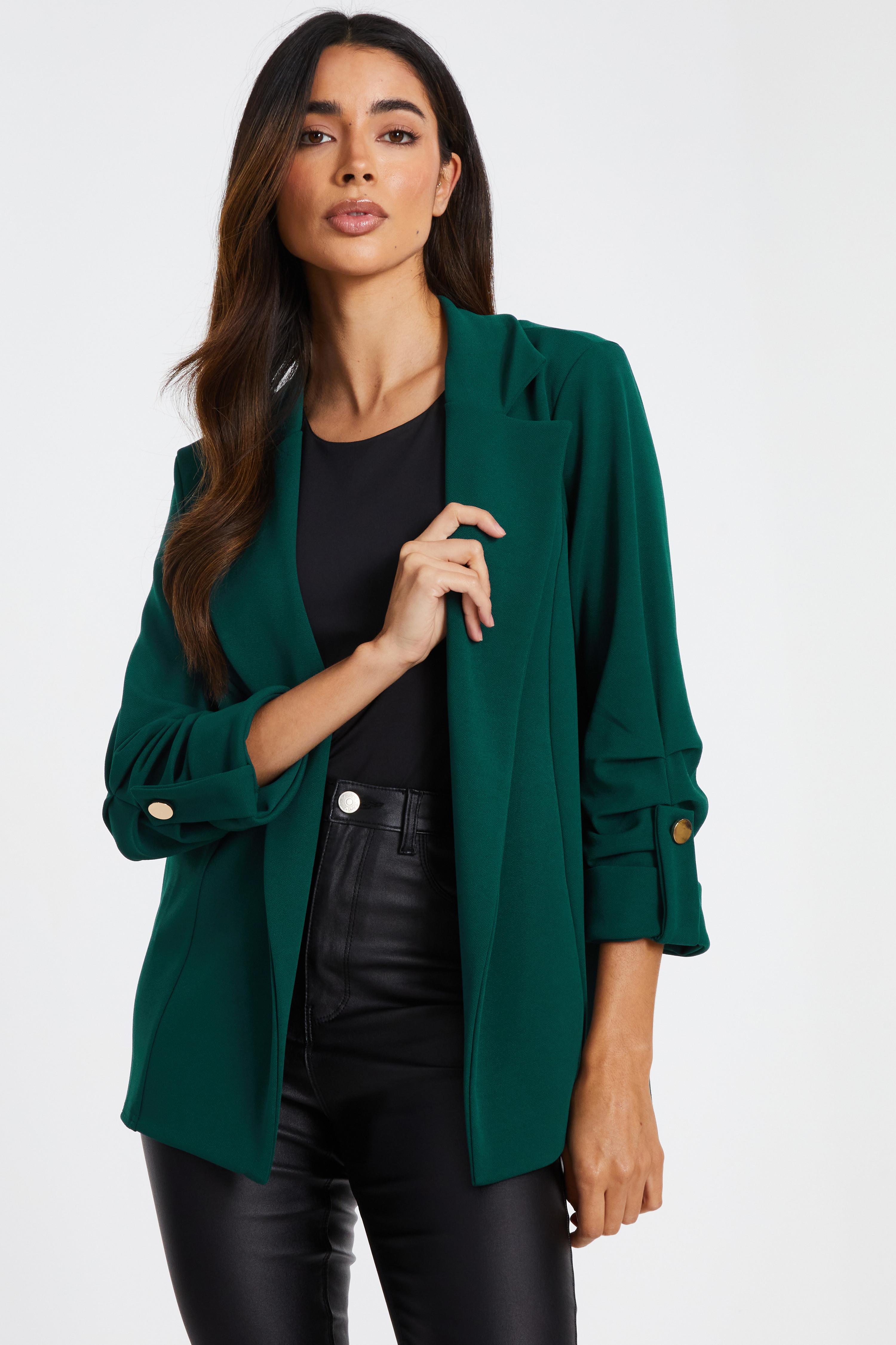 Quiz Womens Bottle Green Ruched Sleeve Blazer - Size 8 UK | Quiz Sale | Discount Designer Brands