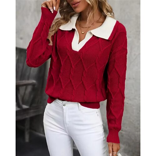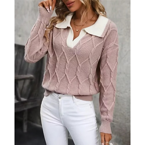 Per donna Felpa Maglione Elegante Casual Colore Puro A Coste Colletto a Camicia Lavorato a maglia Manica Lunga Top Regolari Maglia All'aperto Quotidiano Weekend Rosa intenso Nero Autunno Inverno