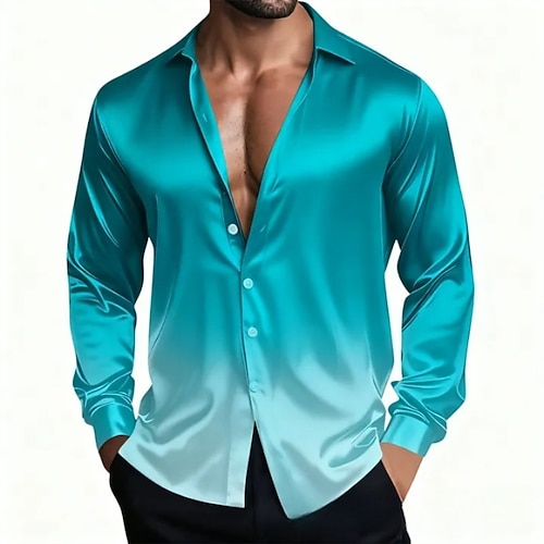 Per uomo Camicia Camicia in raso Camicia elegante Camicia con Bottoni Camicia da Ballo Sfumatura Matrimonio Formale Rosa chiaro Blu chiaro Nero Blu Manica Lunga Collo ripiegato Tutte le stagioni