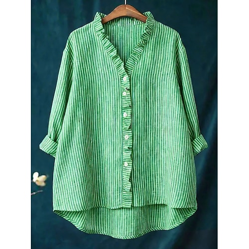 Per donna Camicia Boho Grafico A righe Elegante Vintage Quotidiano Manica Lunga Scollo a V Top Regolari Quotidiano Lavoro Ferie Volant Blu Rosa Rosso Marrone Verde Estate Primavera Autunno Inverno