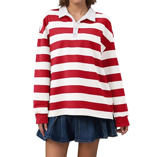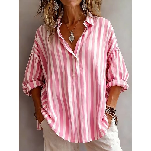 Per donna Maglietta A righe Moda Elegante Classico Manica Lunga Colletto a Camicia Top Regolari Quotidiano Uscire Weekend Bottoni Blu Bianco e nero Bianco Giallo Rosa Primavera Autunno
