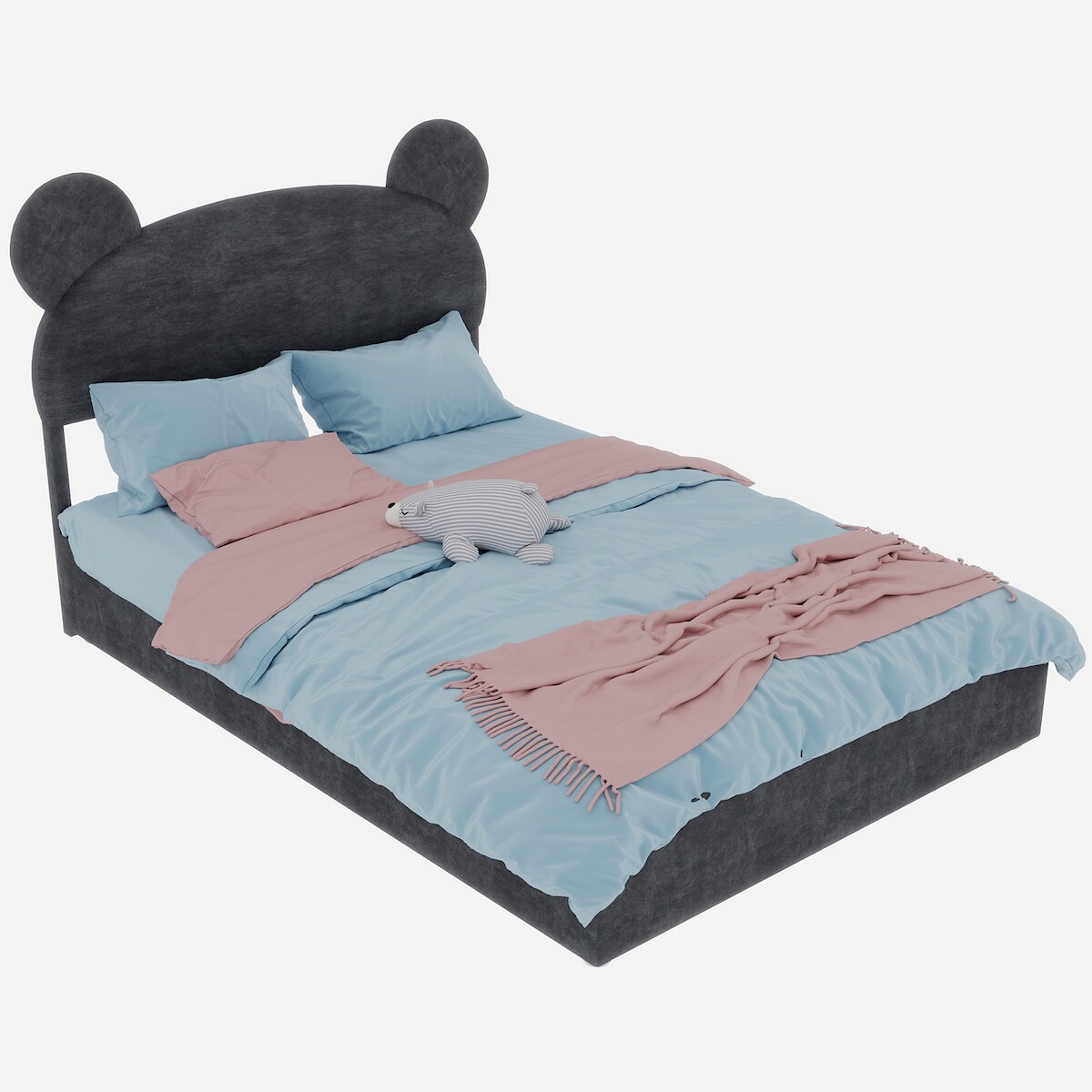 MODFU Polsterbett 140x200 cm mit Gaslift und Stauraum, Cartoon-Kopfteil, modernes Design, Stoffbett mit Lattenrost, Grau